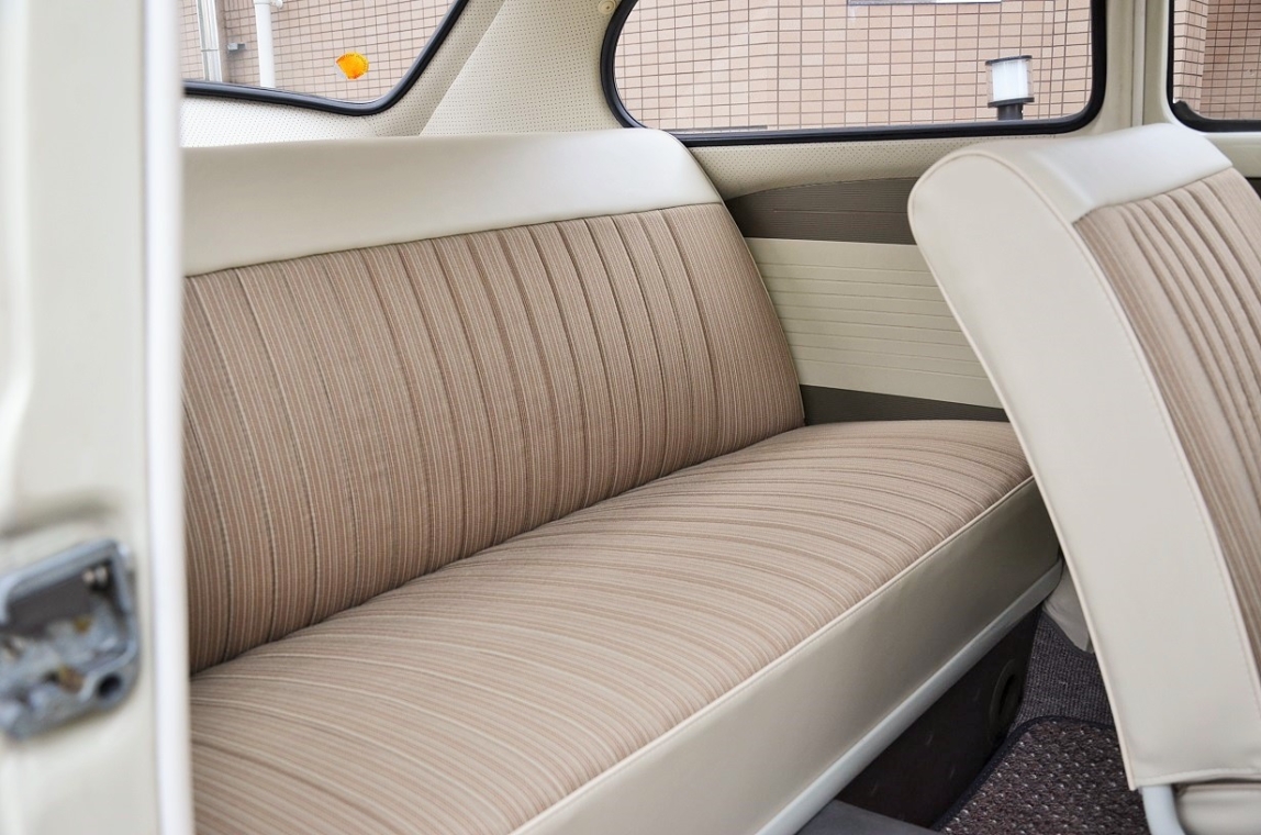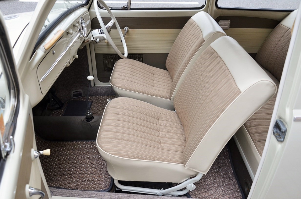 オリジナルディテールがしっかりと残ったグッドコンデションの"大5"シングルナンバー!アウターのみオリジナルカラーにてリペイント済みで大変クリーンな状態です。ヘッドライナーもリペイント時にオリジナルスタイルにて張替え済み!各ウィンドウシール等もNewパーツを使用し交換しております。シートも65オンリーのオリジナルマテリアルを忠実に再現された生地を使用し、ジャーマンカーペットと共にオリジナルスタイルにて張替え致しました♪♪エンジンもO/H済みで好調です!!自信を持ってオススメ出来る一台となっております。