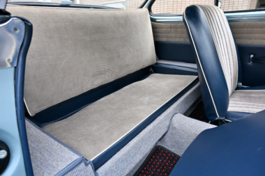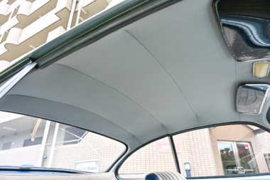 インテリアもウールヘッドライナー、ジャーマンカーペット、フロント&リアシート、ドアパネルと最高級マテリアルを使用しオリジナルディテールを忠実に再現したウエストコーストクラシックインテリア製品を当社でしっかり張り替えております。ドアインナーモールやドアパネルモールはもちろん、プルストラップやアームレストも欠品する事無くしっかり備わっております。ステアリングはオリジナルのロメッシュステアリングが備わり新品のココマットも付属します。