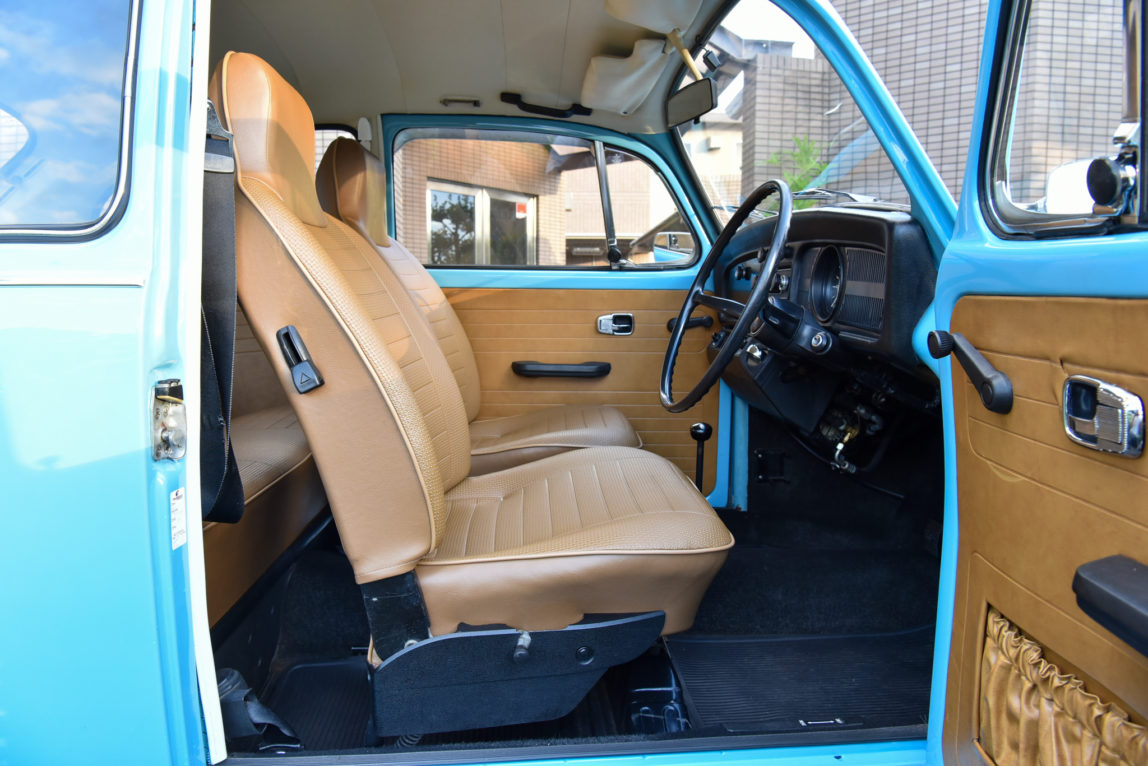 シート、ドアパネルはオリジナルをキープしておりましたが今回シートのみオリジナルスタイルにて張り替え致しました。クーラー装着済みで当社オリジナルアイテムの"アイドルアップKit"も装着済みですので、真夏でも快適にお乗り頂ける1台です。