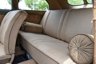 ポルシェ356のpreA~Aに採用されていたVDM製の2スポークステアリングに大変希少なベッカー製のクロックラジオ、ルーフネット、オリジナルのパーセルシェルフにシフトロックなども備わります。